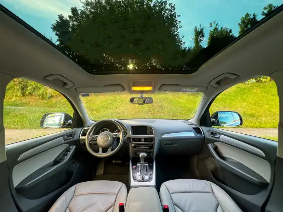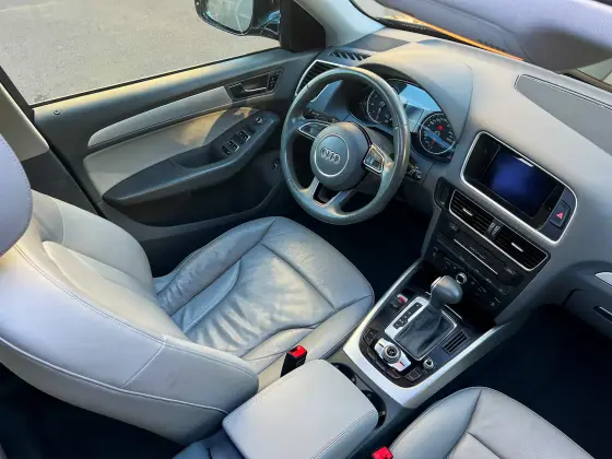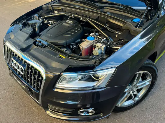 Audi Q5 Ambiente 2016 TFSI Quattro Tiptronic, impecável! IPVA pago, revisões na concessionária, histórico de manutenção com notas de serviço. KM original garantido, sem enchente, sinistro ou leilão. Possui chave reserva e manual. Equipado com teto solar panorâmico, multimídia CarPlay sem fio, ar dual zone, indicador de fadiga, paddle shift, bancos elétricos em couro bege, câmera de ré, sensores, câmbio de 8 marchas, faróis de xenônio e airbags frontais, laterais e de cortina. Outros Opcionais: Banco bi-partido, Comando de áudio no volante, Controle de estabilidade, Distribuição eletrônica de frenagem, Farol de neblina, Kit Multimídia, MP3 Player, Pára-choques na cor do veículo.