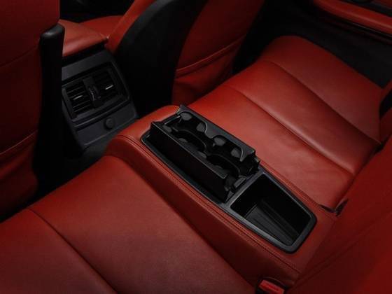 Interior: Bancos de couro bi-color preto/vermelho