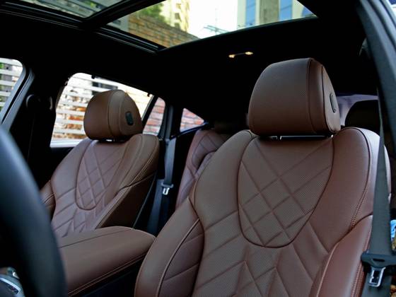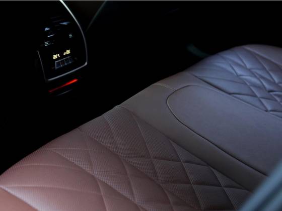 Veículo com rodas de liga leve diamantadas, teto solar panorâmico, bancos em couro Mocha com ajustes elétricos, painel TFT e telas de entretenimento traseiras.