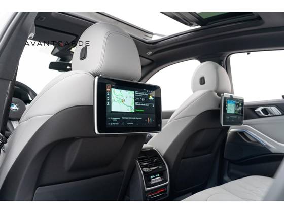 Cor Branco Mineral, Faróis BMW Laser, Interior em Couro Merino Silverstone e Preto, Acabamentos internos em Alumínio, Iluminação ambiente configurável, Painel de instrumentos digital configurável, Multimídia com Navegação, Apple CarPlay e Android Auto, Carregador wireless, Multimídias individuais para fileira traseira, Cortinas para fileira traseira, Teto solar panorâmico elétrico, Bancos dianteiros com aquecimento, Controle de cruzeiro adaptativo, Assistente de manutenção em faixa e Frenagem de emergência autônoma.