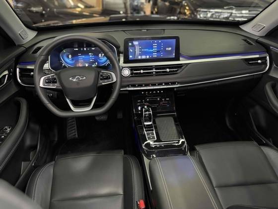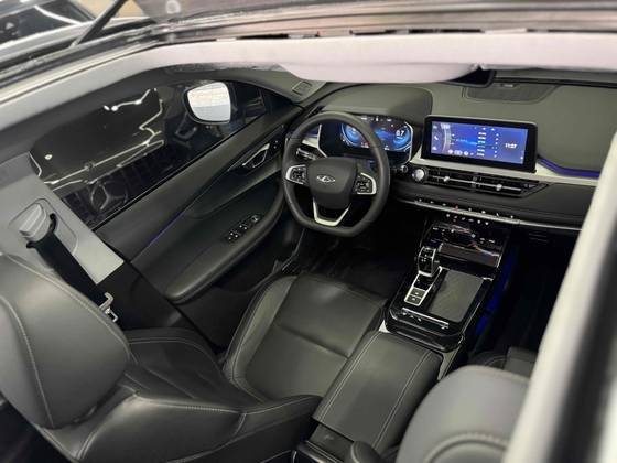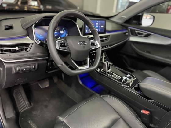 Teto solar panorâmico funcional, bancos em couro com ajuste elétrico de altura e profundidade, painel digital, interno com detalhes em led, multimidia com espelhamento, carregador por indução, ar condicionado digital, freio de mão eletrônico, porta copos, câmera 360º, volante multifuncional revestid...