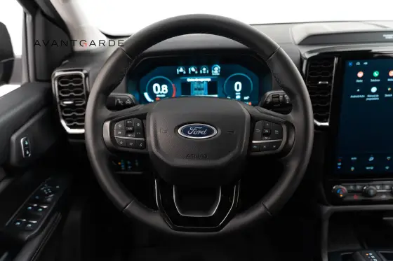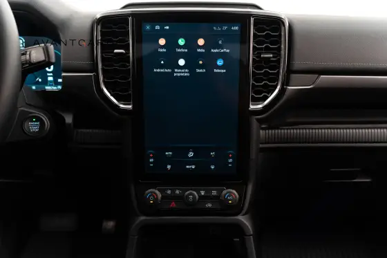 Faróis de LED, Protetor de caçamba, Estribo lateral, Interior em Couro Preto, Acabamentos internos em Black Piano, Banco do motorista com ajuste elétrico, Painel de instrumentos digital configurável, Volante multifuncional, Carregador wireless, Controle de Cruzeiro Adaptativo, Assistente autônomo de frenagem com detecção de pedestres, Assistente de partida em rampa, Assistente de permanência em faixa, Assistente autônomo de frenagem, Assistente de ponto cego, Ford Pass Outros Opcionais: Comando de áudio no volante, Controle de estabilidade, Direção Elétrica, Distribuição eletrônica de frenagem, Farol de neblina, Kit Multimídia, Pára-choques na cor do veículo.
