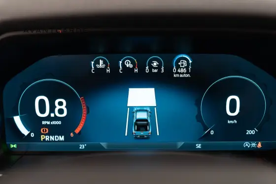 Faróis de LED, Protetor de caçamba, Estribo lateral, Interior em Couro Preto, Acabamentos internos em Black Piano, Banco do motorista com ajuste elétrico, Painel de instrumentos digital configurável, Volante multifuncional, Carregador wireless, Controle de Cruzeiro Adaptativo, Assistente autônomo de...