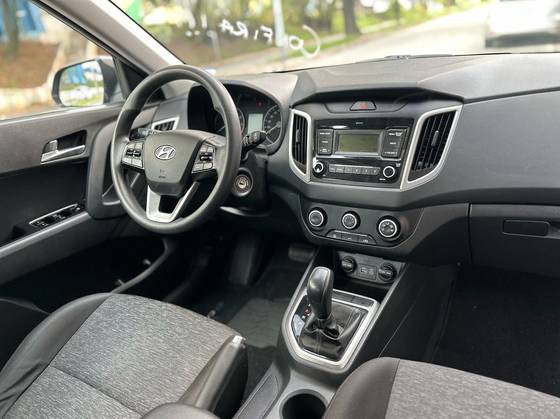 Hyundai Creta 1.6 Action 2021, câmbio automático, central multimídia, ar-condicionado, volante multifuncional com ajuste de altura e profundidade, direção elétrica, vidros e travas elétricas, bancos revestidos em tecido premium, sensores de estacionamento traseiro, câmera de ré, faróis com acendimen...