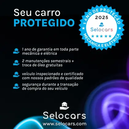 Veículo vistoriado e selado pela Selocars, possui garantia de 1 ano para motor, câmbio, freio, suspensão, injeção eletrônica, ar condicionado e parte elétrica/ eletrônica.