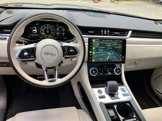 O Jaguar F-Pace 2. 0 PHEV R-Dynamic SE 404cv combina luxo, desempenho e eficiência. Seu motor híbrido plug-in entrega 404cv com tração AWD, garantindo potência e sustentabilidade. O design esportivo R-Dynamic, na elegante cor Portofino Blue, se destaca, enquanto o interior Light Oyster em couro premium proporciona requinte. Equipado com teto panorâmico, som Meridian™, head-up display e Pivi Pro, oferece tecnologia de ponta para uma experiência única.