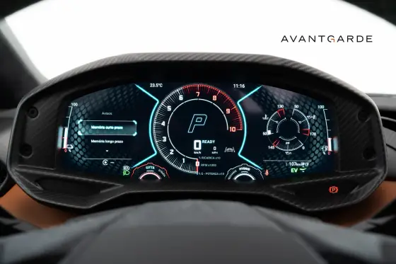 HÍBRIDO Cor Marrone Apus Matt, Freios de Carbo cerâmica, Full PPF fosco, Interior em Couro e Alcântara Grigio Octans e Terra Kedros com costuras em Verde Scandal, Teto revestido em Alcântara, Acabamentos internos em Fibra de Carbono Fosco, Painel de instrumentos digital configurável, Multimídia com...