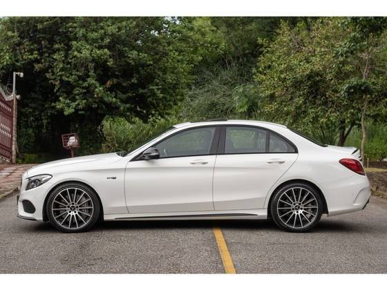 Essa unidade está na cor Branco Polar com o interior em Couro Preto e acabamento interno em fibra de vidro fosca. Seus principais opcionais são rodas 19", Park Assist ativo, piloto automático, detector de fadiga do motorista, sensor de estacionamento dianteiro e traseiro, câmera de ré, teto solar, bancos elétricos com lombar e memória, ar condicionado dual zone, sensor de luz e chuva, iluminação ambiente, faróis Full LED inteligentes, escapamento esportivo, painel forrado em couro Artico, suspensão adaptativa (AMG Ride Control), multimídia COMAND de 8,4" com GPS e Bluetooth, cintos em Vermelho, sensor de pressão dos pneus, Keyless Start, soleiras iluminadas.