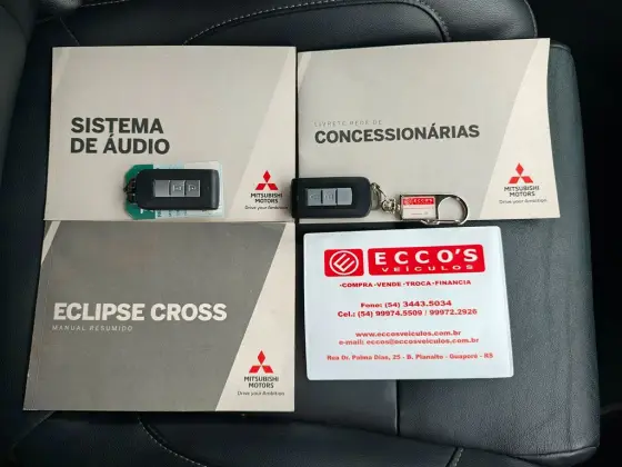 ECLIPSE CROSS HPE 1.5 Turbo 2023. Ar Condicionado Digital, Direção Elétrica, Bancos em Couro, Câmbio Automático CVT C/Borboletas no Volante, Air Bags Frontais e Laterais, Freios ABS, Central Multimídia GPS/Câmera de Ré/Bluetooth/USB, Comandos de Som no Volante, Piloto Automático, Alarme, Vidros e Travas Elétricas, Interface, Rodas de Liga Leve, Controle Automático de Velocidade, Piloto Automático, Sensores de Estacionamento, Nota Fiscal, Manual do Proprietário, Placas Mercosul, Pneus Novos, Este Outros Opcionais: Assistente de Partida em Rampa, Banco bi-partido, Comando de áudio no volante, Controle de estabilidade, Direção Elétrica, Distribuição eletrônica de frenagem, Farol de neblina, Kit Multimídia, MP3 Player, Pára-choques na cor do veículo, Porta-copos.