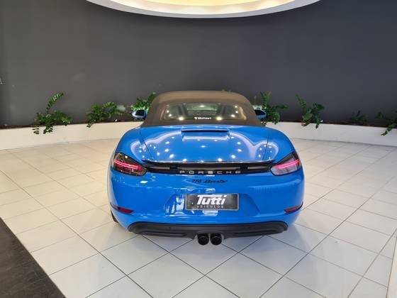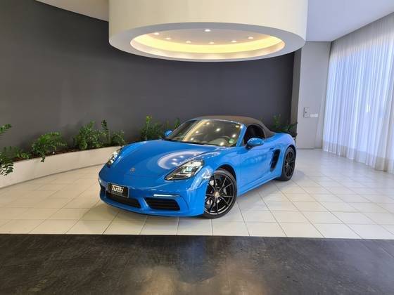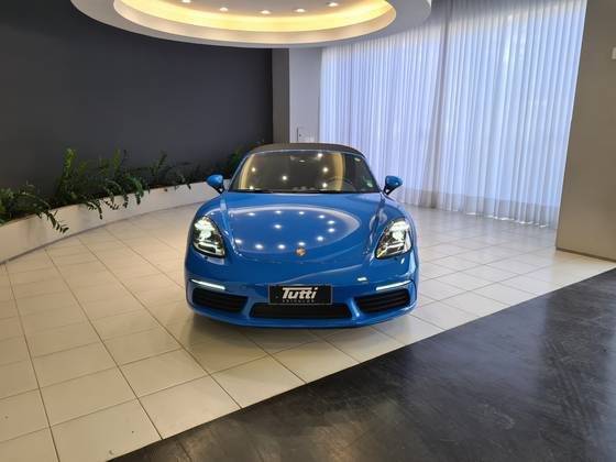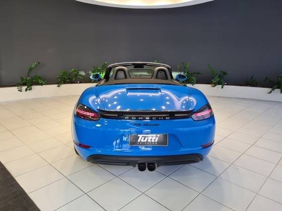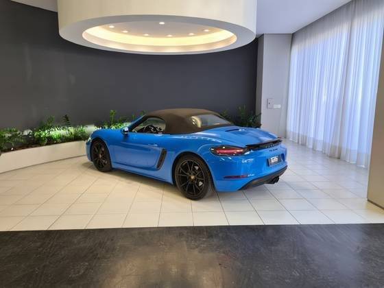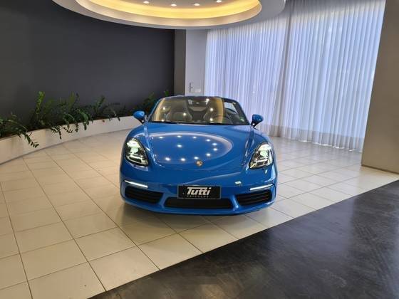 BOXTER/6MKM/RODA CARRERA S 20'/PCTE SPORT CHRONO/PAINEL VERMELHO/COURO ESPECIAL SHARK BLUE/CINTOS AZUIS/FAROIS PDLS PLUS/BCO ESPORTIVO COM ESCUDO PORSCHE/AEROFÓLIO E EMBLEMAS EM PRETO BRILHANTE
