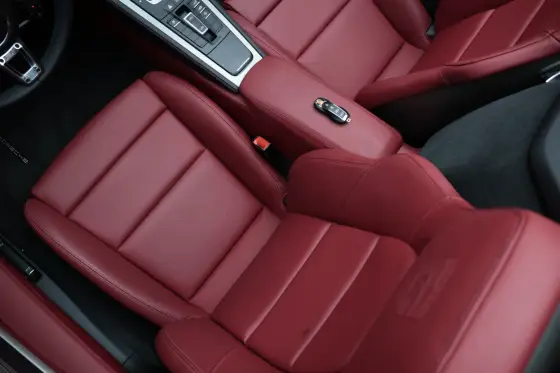 -Escudo porsche gravado em relevo nos encostos de cabeça