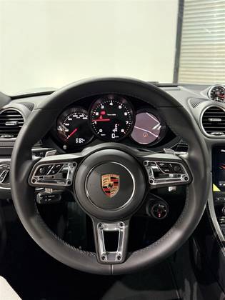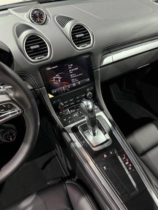 Prata GT Metálico Conjunto de adesivos decorativos em preto Porsche Exclusive Manufaktur Exclusão da designação do modelo Interior em couro preto, costura contrastante Crayon Rodas de 20 polegadas para o 718 Spyder pintadas em preto (alto brilho). Parafusos de roda anti-roubo Bancos esportivos Plus (2 vias, elétricos) Powertrain, chassis e desempenho Transmissão Porsche Doppelkupplung (PDK) Pacote Sport Chrono incluindo seletor de modo de condução Ponteiras de escape esportivas prateadas Porsche Exclusive Manufaktur Tanque de combustível de 64 litros Faróis principais Bi-Xenon incluindo Porsche Dynamic Light System (PDLS) Design dos bancos Cintos em Prata Volante esportivo GT Volante e manopla do câmbio Pedais e apoio para os pés com visual esportivo Escudo Porsche na tampa do porta-objetos