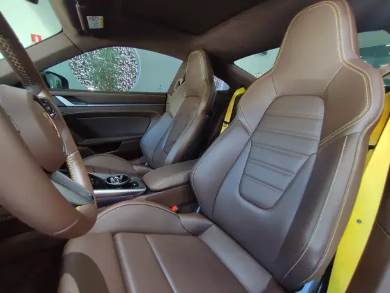 Acessórios 140K: escapemento Secret Weapon em titânio, cintos amarelo Racing, volante esp GT, Mostrador tacômetro e instrumentos do cronômetro em amarelo Racing, Soleiras de portas em carbono iluminadas, couro clube Marrom Trufa, Logo e base dos espelhos em preto brilhante, projeção logo de iluminação nas portas, pacote SportDesign, direção assistida Plus,, pacote de acabamento int com costuras decorativas, pintura 100% em PPF.
