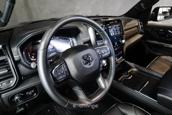 Configurado na cor Diamond Black Crystal Pearl, Faróis Full LED , Rodas aro 22” Diamantadas , RAM Box, Divisor de caçamba , Estribo elétrico , Acabamentos externos em Aço Escovado , Soleira em aço “RAM”, Interno em couro preto com costuras em cinza, Suspensão pneumática , Controle de velocidade adaptativa, Auto Hold, Reboque Trailer, Partida remota, Chave presencial, Sistema Start/Stop, Garantia de fábrica, Revisões em dia na concessionária. Outros Opcionais: Banco bi-partido, Comando de áudio no volante, Controle de estabilidade, Direção Elétrica, Distribuição eletrônica de frenagem, Farol de neblina, Kit Multimídia.