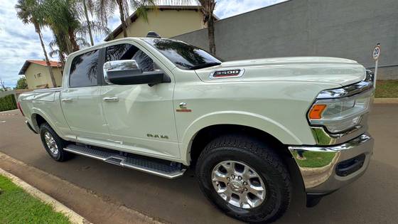 RAM 3500 Laramie 6. 7 4x4 Diesel (22/22), blindada nível III-A pela Blindarte, com 59. 000 km. Cor branco perolado, interior marrom premium, central multimídia 12”, bancos ventilados, som premium e acabamento impecável. Motor Cummins, câmbio automático, sensor 360°, câmeras, teto solar e todos o...