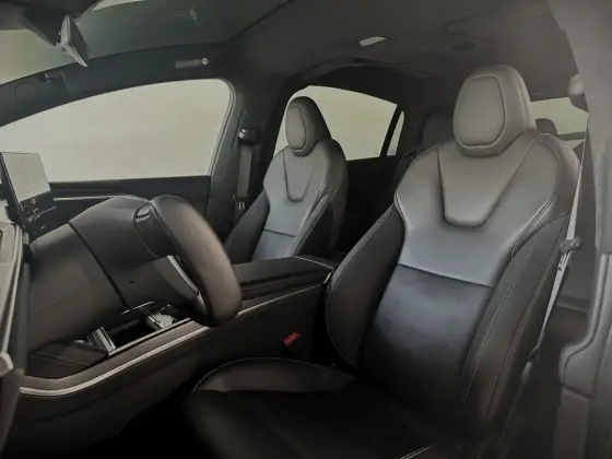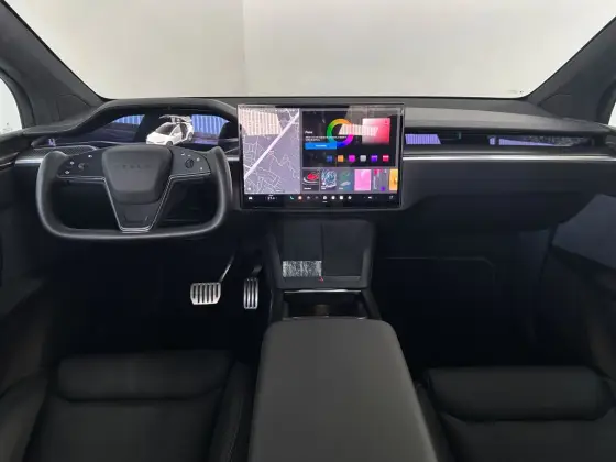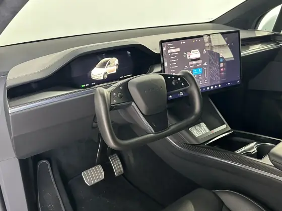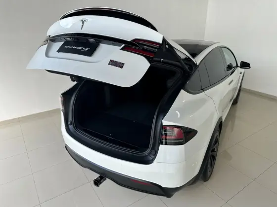 Branco Pérola, Interno Preto e Detalhes em Fibra de Carbono. 3 Motores Elétricos + Modo Drag Strip + Tração Integral + Faróis Full LED com DRL Integrado + Rodas Turbine + Central Multimídia com Inclinação para a Esquerda e Direita e Acesso a Todas as Funções do Veiculo + Engate de Reboque + Volante Yoke + Portas Asa de Falcão.