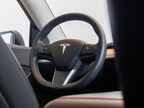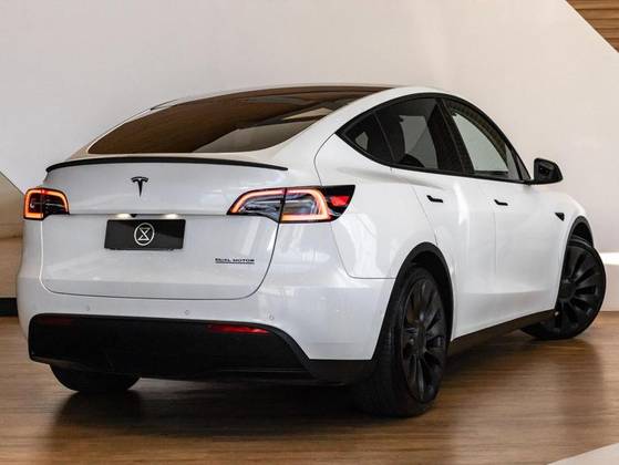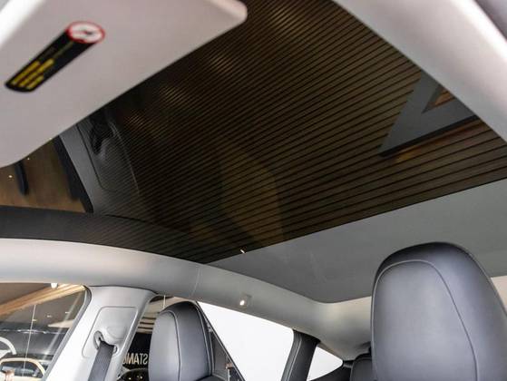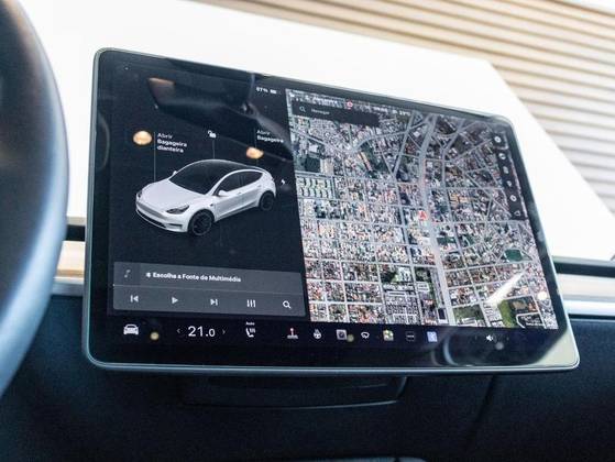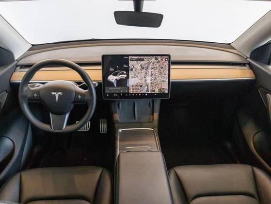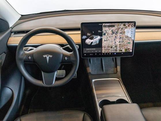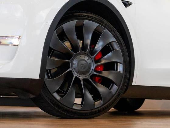 Dual Motor, Volante em couro, Cartão presencial, Sistema Dash Cam, Teto panorâmico em vidro, Sistema de entretenimento, Pinças de freio em Vermelho, Bancos em branco com ajuste elétrico, Painel Multimídia com comandos do veículo.