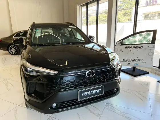COROLLA CROSS XRE 2025 0KM - BLINDADO III-A GRAFENO BLINDAGENS ENTREGA PROGRAMADA. ENTREGA RÁPIDA. Outros Opcionais: Banco bi-partido, Comando de áudio no volante, Controle de estabilidade, Direção Elétrica, Distribuição eletrônica de frenagem, Kit Multimídia, Pára-choques na cor do veículo.