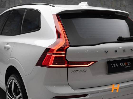 Volvo XC60 R-Design T8 híbrida plug-in. Versão topo de linha com blindagem BSS nível III-A. Motor turbo e elétrico com potência combinada e tração integral AWD. Pacote R-Design interno e externo, bancos esportivos em couro com ajustes elétricos e memória, ar-condicionado quadrizone, teto solar panorâmico, central multimídia vertical com conectividade, sistema de som Harman Kardon, câmera 360°, piloto automático adaptativo, porta-malas elétrico hands-free, faróis full LED direcion